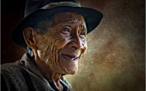 Seorang perempuan berusia renta lantas keluar rumah, sambil membawa sebuah gelas cangkir berisi kopi panas, lalu meletakannya di sebuah kursi panjang dari bambu di beranda rumah.