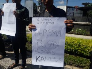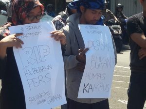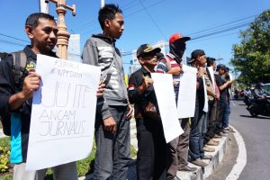 “AJI Jember menyoroti banyaknya aksi pengekangan kebebasan pers, mulai dari kasus kriminalisasi jurnalis dengan menggunakan UU ITE, kasus kekerasan yang menimpa jurnalis, tidak adilnya penerapan hukum pada pelaku kekerasan terhadap jurnalis hingga pemutusan hubungan kerja sepihak yang dilakukan perusahaan media,” kata anggota AJI Jember Sri Wahyunik.
