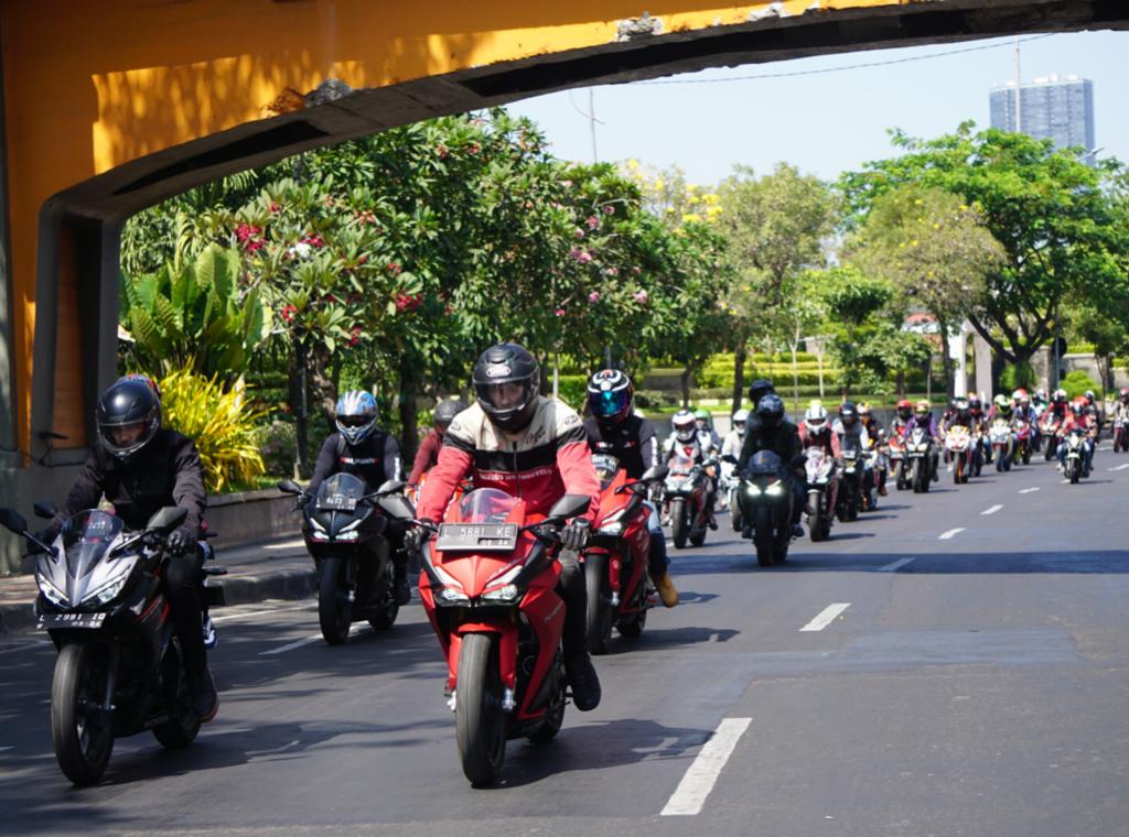 “City touring pakai motor di Surabaya ini yang pertama. Mengasyikkan berkendara sambil menikmati pemandangan Kota Surabaya dengan CBR250RR bersama dengan teman-teman komunitas Honda,” kata Darius.