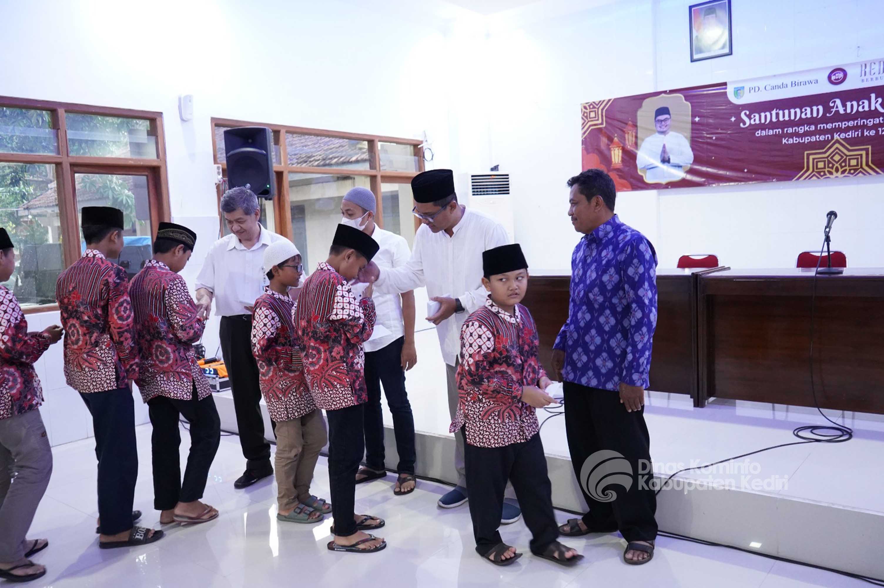 Acara tersebut mengundang anak yatim dari Yayasan Darul Aytam Muslimat NU dan bertempat di Ruang Sekartaji Pendapa Panjalu Jayati dan diikuti beberapa Direktur Utama Perusahaan Daerah Kabupaten Kediri dan para rekanan PD Canda Birawa, Rabu, 29 Maret 2023.