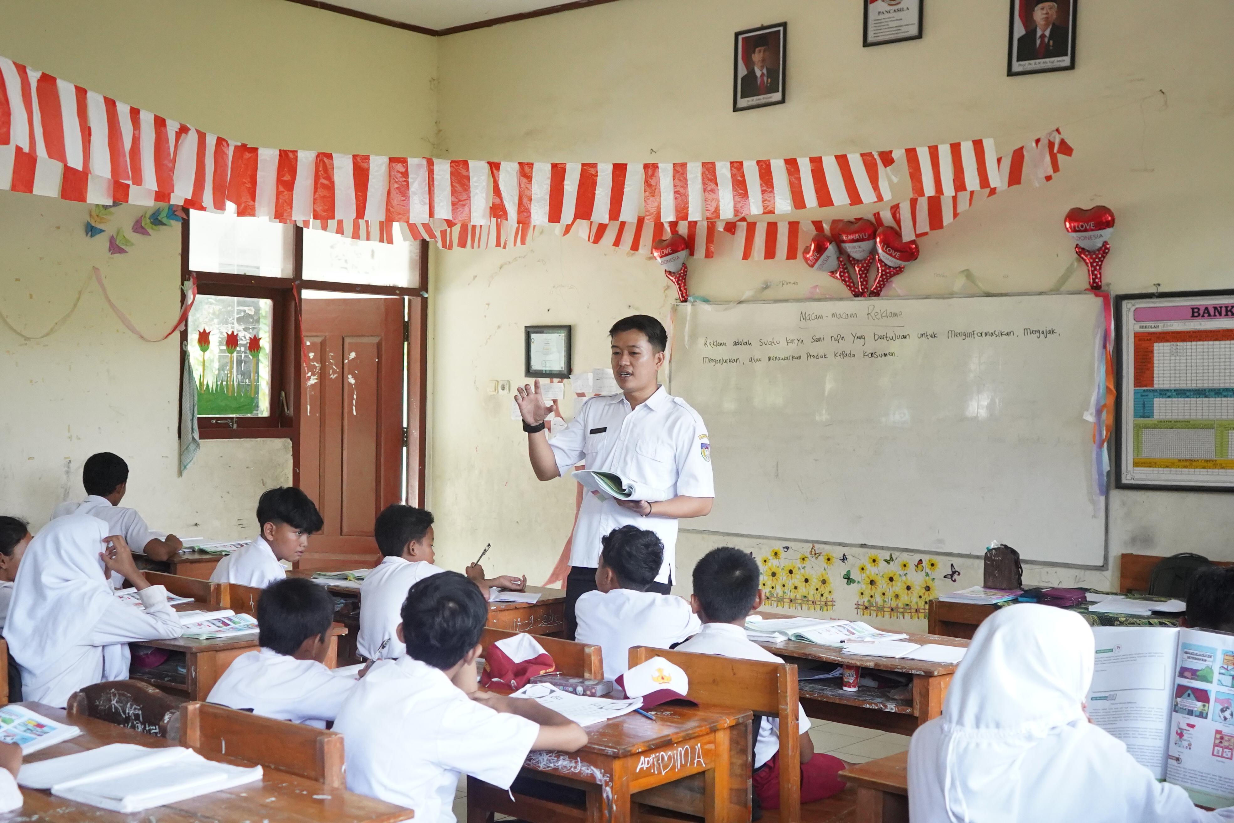 Namanya Marga Cistha, pengajar di SD Negeri Tiru Lor 2 Kecamatan Gurah sejak tahun 2021. Kegiatan kesehariannya bersama siswa biasa dibagikan ke media sosial TikTok.