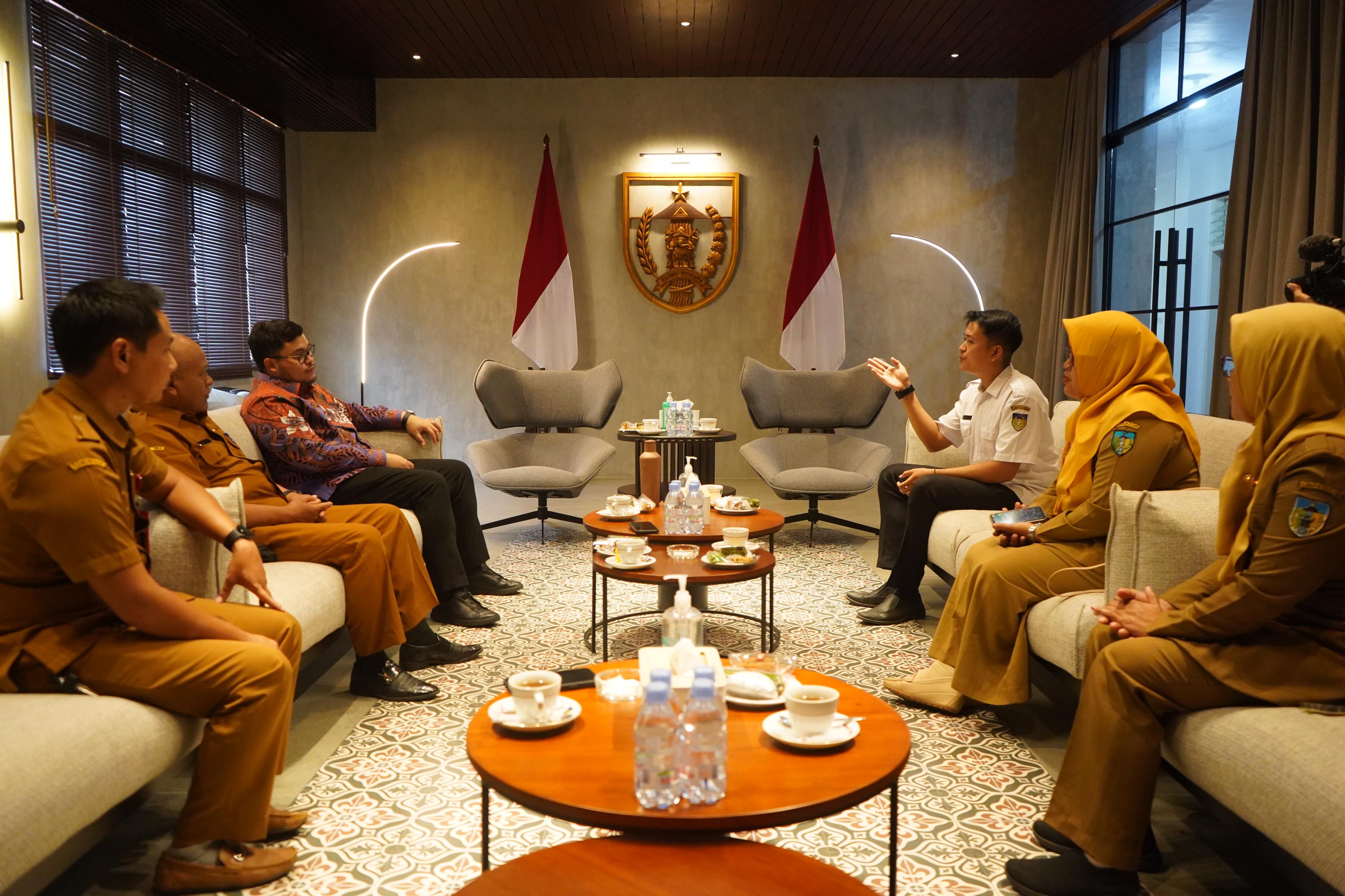 Didampingi Kepala Dinas Pendidikan Kabupaten Kediri Mokhamat Muhsin dan kepala sekolah di tempatnya mengajar, Marga mengisahkan perjalanannya selama menjadi guru honorer.