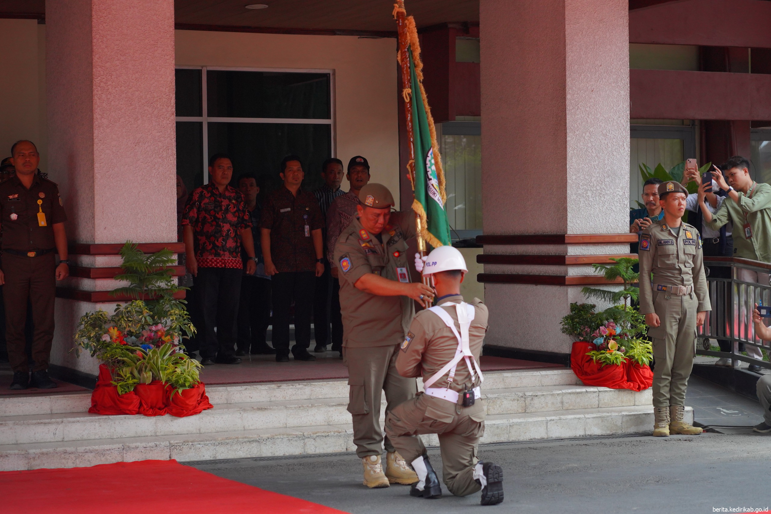 Untuk menyambut warganya, Mas Dhito didampingi Wakil Bupati Dewi Mariya Ulfa dan Ketua TP PKK Kabupaten Kediri Eriani Annisa Hanindhito.