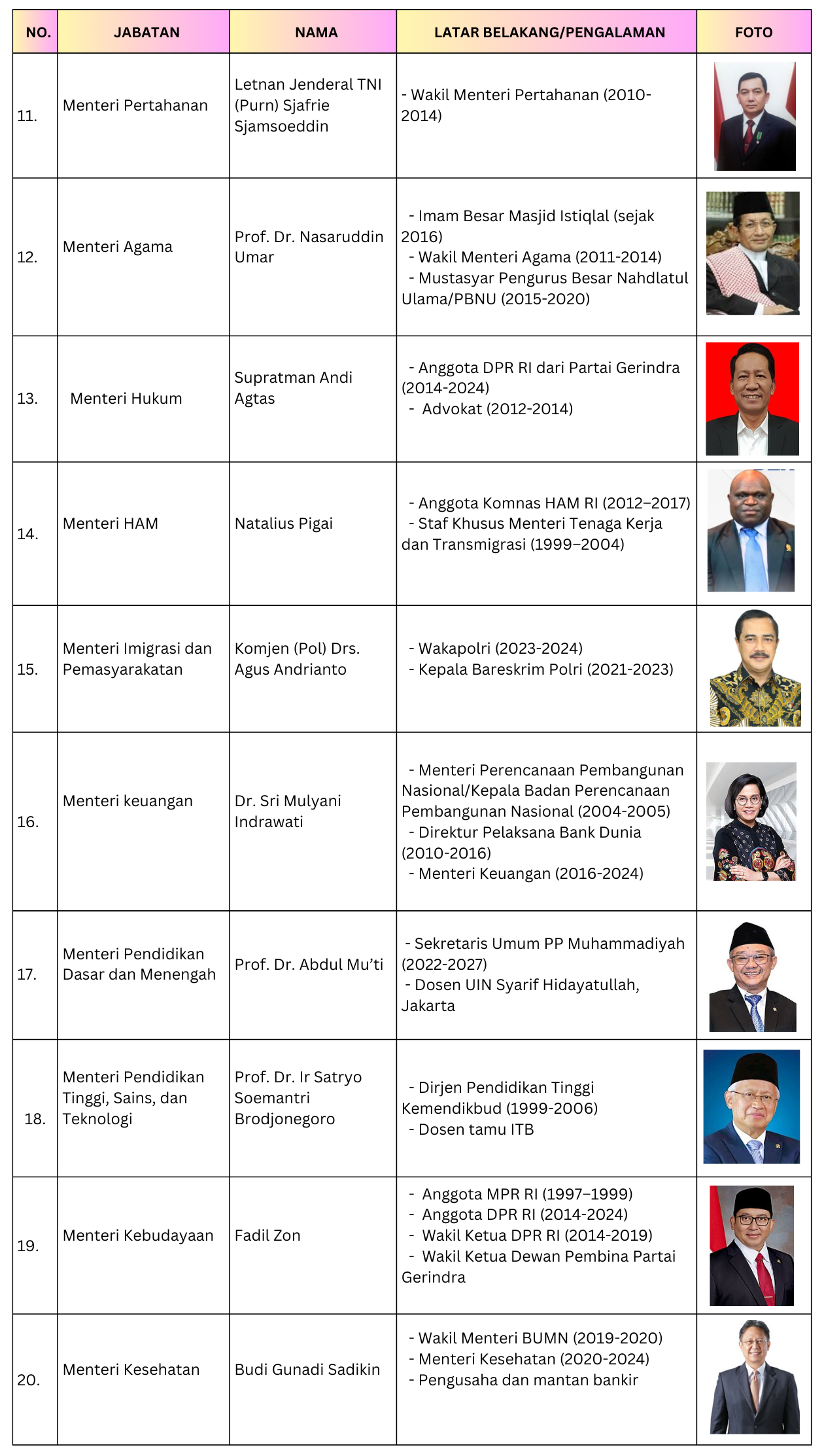 HeadlinePemerintahanPolitik Latar Belakang 48 Menteri Kabinet Merah Putih Pemerintahan Prabowo-Gibran admin20/10/202426/10/2024 Bersambung Halaman 3…… Post Views: 5,890 Pages: 1 2 3 4 5